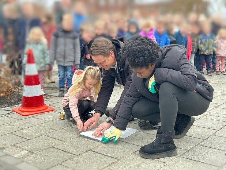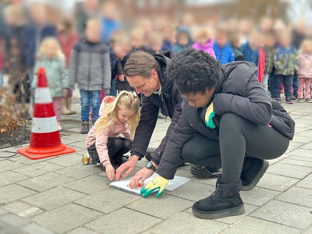 Dinsdagochtend 17 maart was de opening. Alle leerlingen en leerkrachten van de Koningsbergerschool kwamen samen bij de ingang van het plein. Wethouder Alwin te Rietstap vertelde hoe belangrijk de gemeente ‘een veilige schoolomgeving vindt’. “En hoe we dat hier gedaan hebben. Ook bedankte hij natuurlijk alle betrokkenen. Daarna was het tijd voor de officiële opening: de wethouder legde samen met twee leerlingen een speciale Dick Bruna-tegel. Die geeft de oversteekplaats duidelijk aan. Een mooie stap vooruit voor de verkeersveiligheid in Bergentheim.”